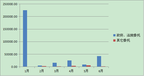 2月、4月、和5月政府、法院委托成交額仍然是主要來源,其余月份其他社會(huì)委托出現(xiàn)大幅增長。