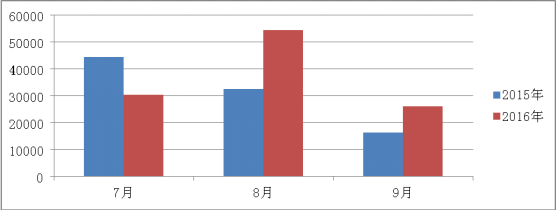 據(jù)全國拍賣行業(yè)管理信息系統(tǒng)顯示,截止9月底,全區(qū)共有拍賣企業(yè)144家,其中分公司4家。從業(yè)人員710人,拍賣師157人。2016年第三季度,拍賣成交276場,同比增長5% ,流拍171場,同步下降25%,實(shí)現(xiàn)成交額110808.62,同比增長18.49%,傭金收入1017.30,同比下降21%。上繳稅收1.73萬元,同比增長11%。利潤383.93,同比增長92%。 一、2016年三季度經(jīng)營情況 根據(jù)經(jīng)驗(yàn)統(tǒng)計(jì)數(shù)據(jù)情況分析顯示:2016年第三季度與2015年同期相比除7月份下降30%,其余8月、9月分別上漲80%、67%。 2016年第三季度成交額情況表 | 單位:萬元 | | 7月 | 8月 | 9月 | 2015年 | 44524.71 | 32612.06 | 16382.61 | 2016年 | 30312.24 | 54431.76 | 26064.62 |