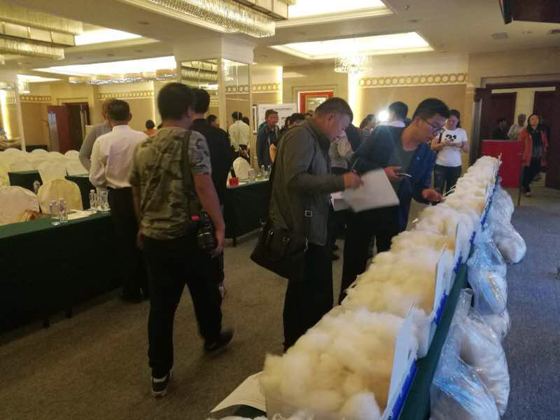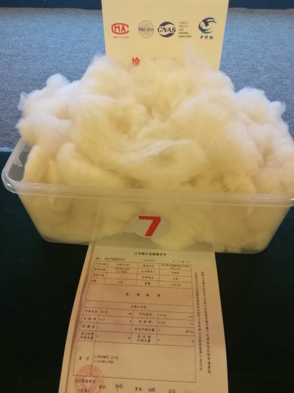 本次羊絨拍賣以無(wú)毛絨為主。羊絨拍賣企業(yè)在技術(shù)部門和合作社的配合下,對(duì)合作社社員的優(yōu)質(zhì)羊絨(纖維細(xì)度14.5微米以下)按高于市場(chǎng)價(jià)20~40元每公斤收購(gòu)。企業(yè)對(duì)已收購(gòu)的原絨通過(guò)認(rèn)真分選和再分級(jí)后分梳出無(wú)毛絨,并按分梳批次將擬拍賣的無(wú)毛絨裝入纖維檢驗(yàn)部門指定的包裝袋,經(jīng)自治區(qū)纖維檢驗(yàn)部門公證檢測(cè)后統(tǒng)一打包封存,出具公檢證明,進(jìn)入拍賣環(huán)節(jié)。拍賣成功后,企業(yè)可將部分拍賣收益以二次分紅的形式通過(guò)合作社獎(jiǎng)勵(lì)給供絨牧戶。各環(huán)節(jié)需要見(jiàn)證人及照片、音像資料佐證。